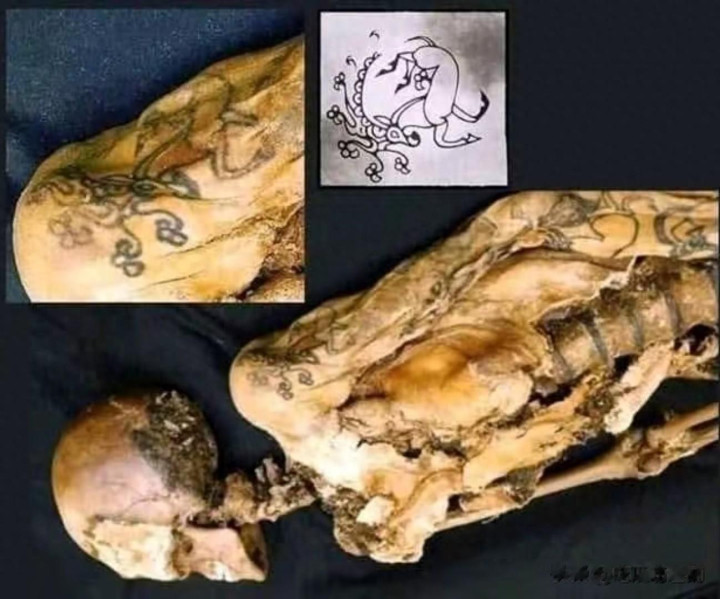 在俄罗斯冬宫博物馆最近的新展览里,盘问东说念主员解开了一个保存了2500年的隐讳。一具来自阿尔泰山脉的古代女性木乃伊,手臂上布满了暗红色纹身。这些纹身蓝本被冻土冰封了两千多年,最近才被高清建筑拍了下来。