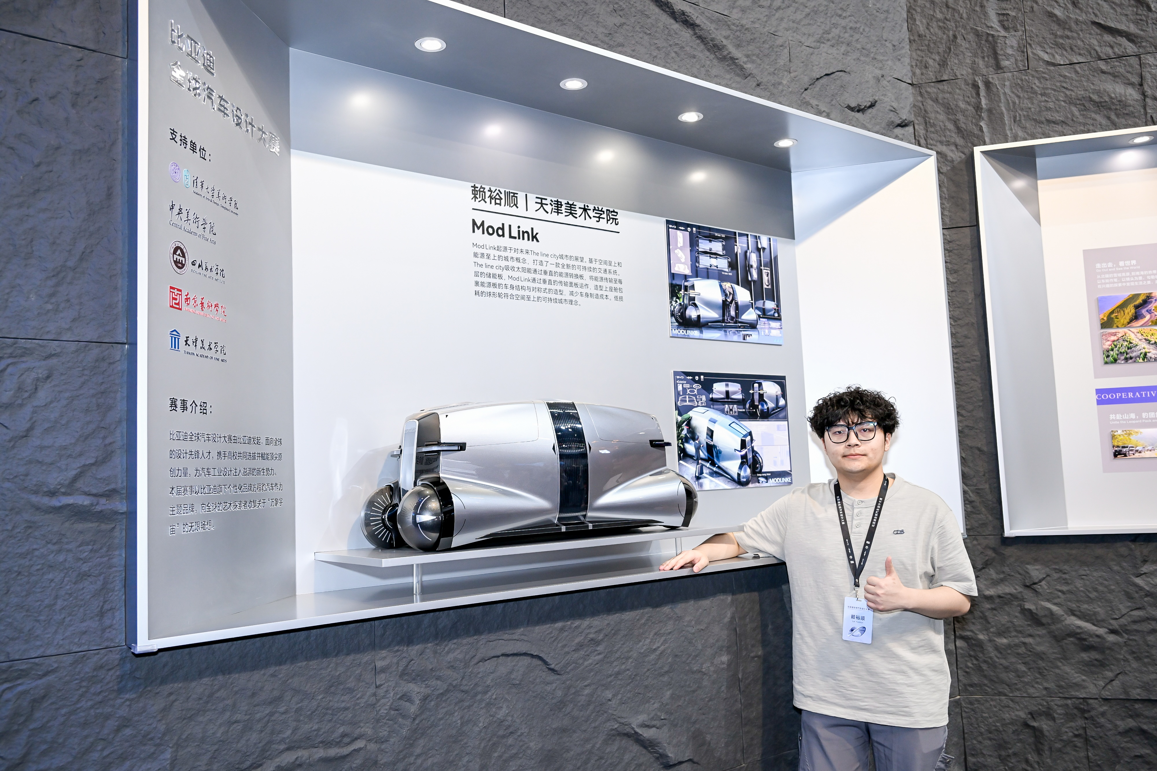 “我是有少量信心的。”他笑着说。当公布冠军是他时,他很欢乐,上台领奖时是比亚迪公司总裁王传福躬行为他颁发奖杯。“我向他答复了我的诡计理念,也感谢他的那段访谈给了我灵感,他对我说‘小伙子很可以’。”在赖裕顺看来,能获取行业顶尖大咖的认同,是令东说念主昂然的事。