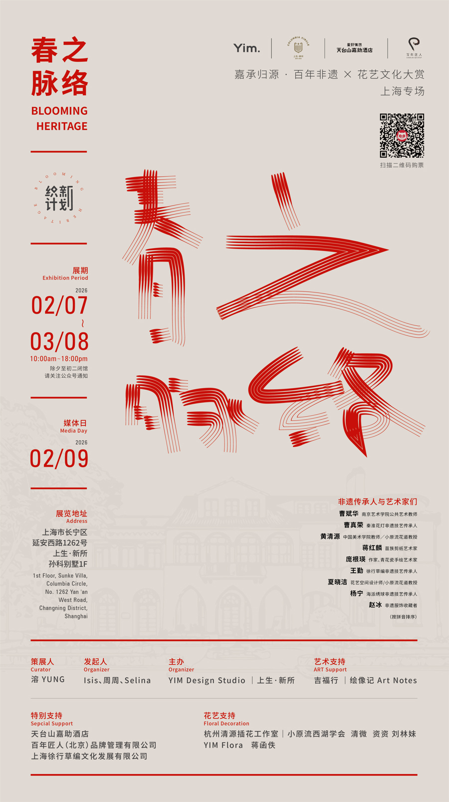 毋庸隔着玻璃仰望,不必在展柜前停步,这一次,非遗不再是被供奉的“遗产”,百年缔造也不再是静止的标本——在上生·新所孙科别墅一层,一场名为《春之线索》的展览,正让历史空间与传统技能,以一种更摆脱、更迫临生计的神色,再行再见、互相叫醒。