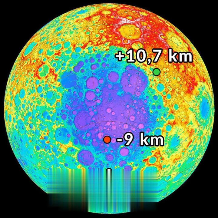当探伤器飞过地下密度超大的区域时,增强的引力会轻轻拉扯卫星,让两颗卫星的距离出现已而波动,科学家通过这些眇小的引力涟漪,绘画出了月球高精度重力颠倒图,也即是月球的里面透视片。